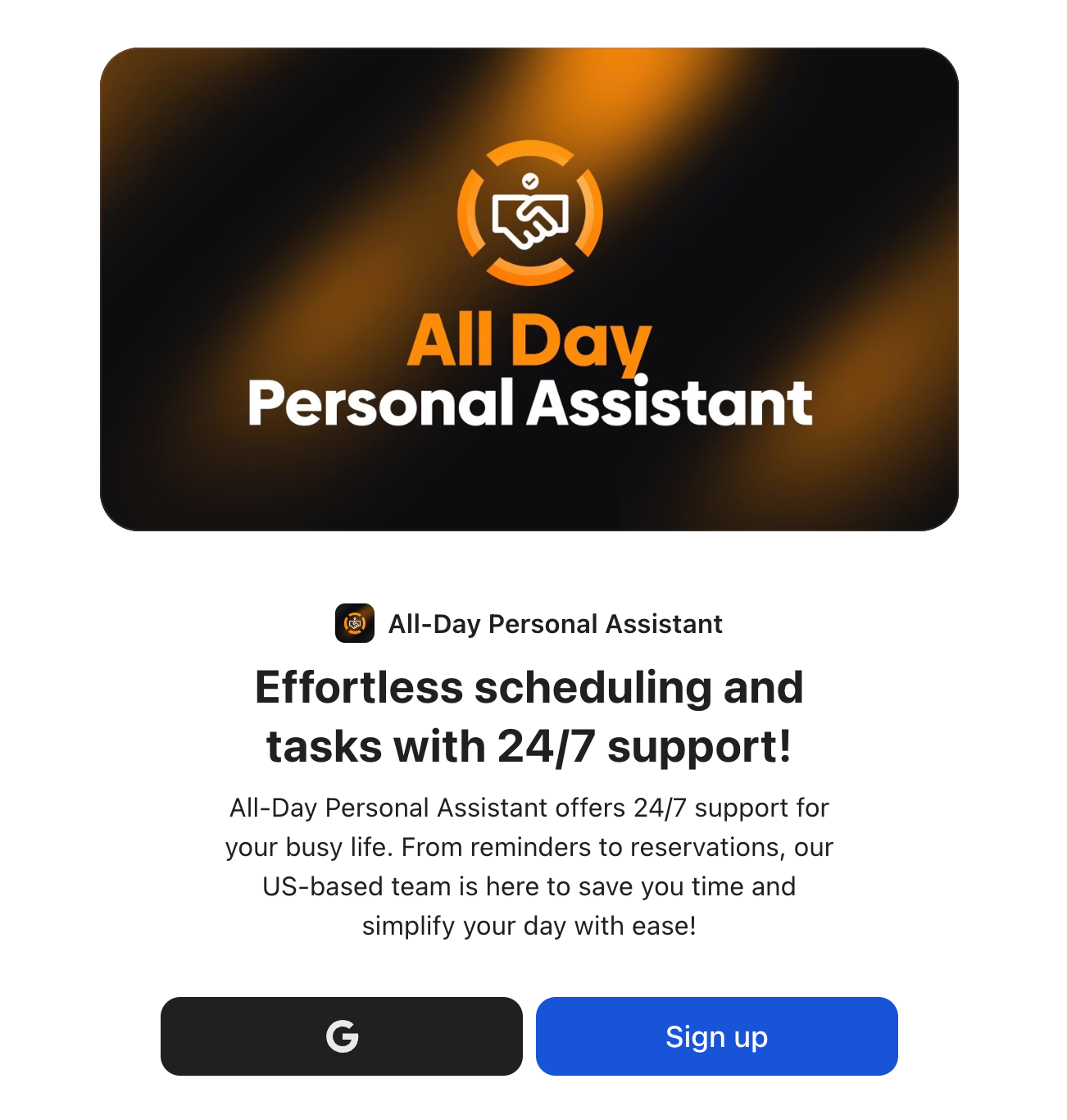Make it short, memorable, and clear about what you do (words like “assistant,” “solutions,” or “support” work well).