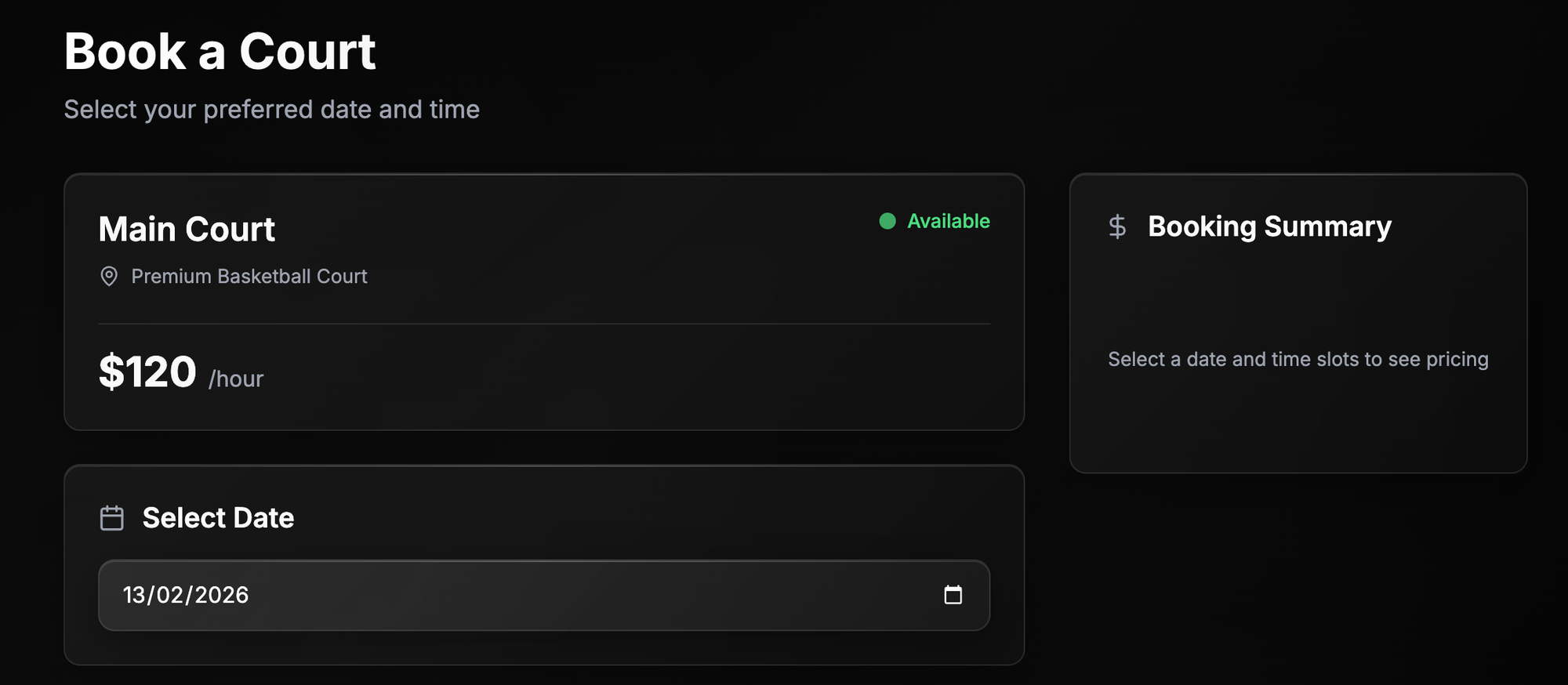 Players click ‘book your court,’ select a time, and receive instant confirmation. Behind the scenes, availability updates automatically, ensuring no double bookings.