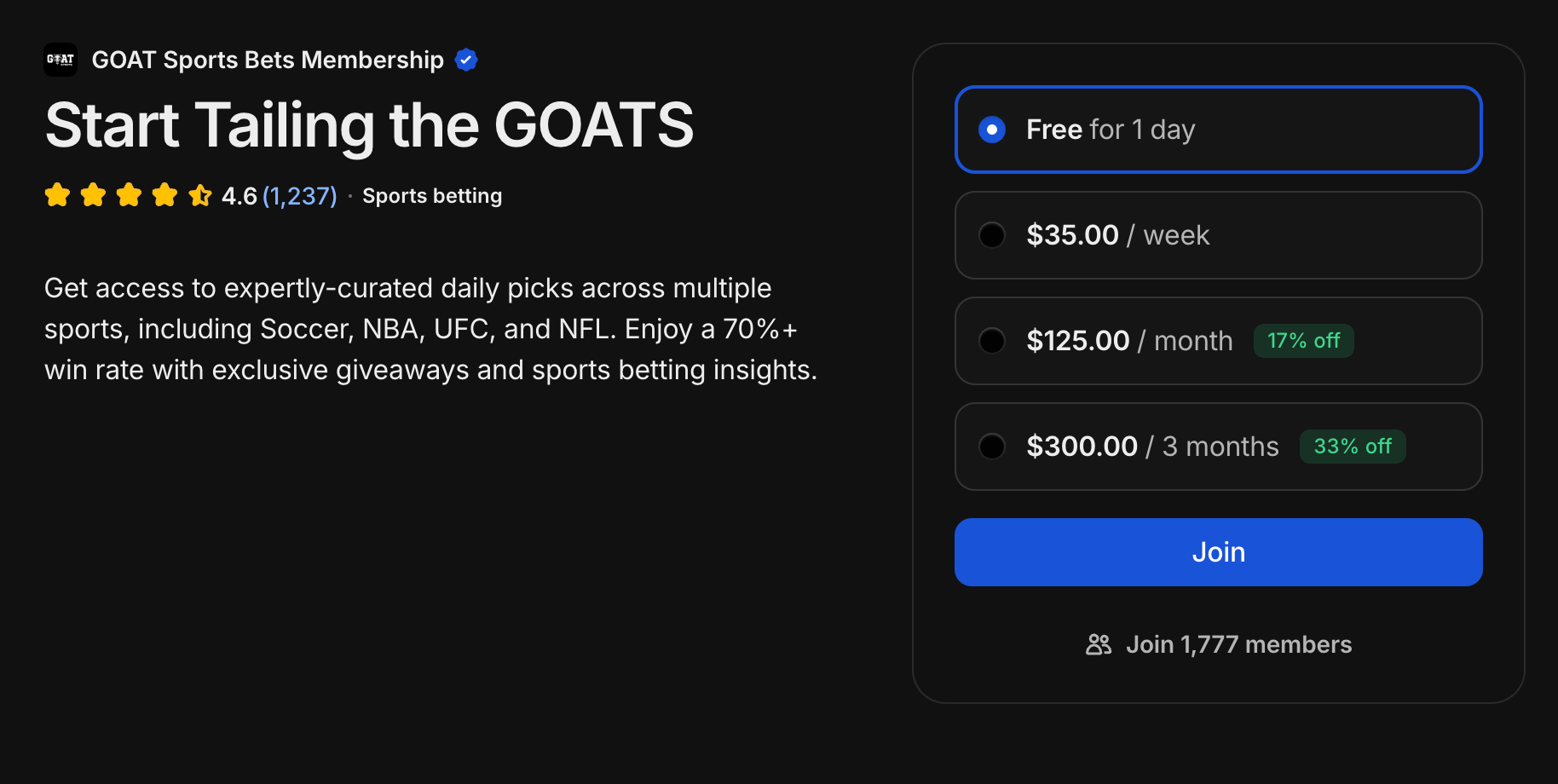 With Whop, you can sell memberships, subscriptions, one-time products, or bundles, with automated renewals and built-in payment processing.