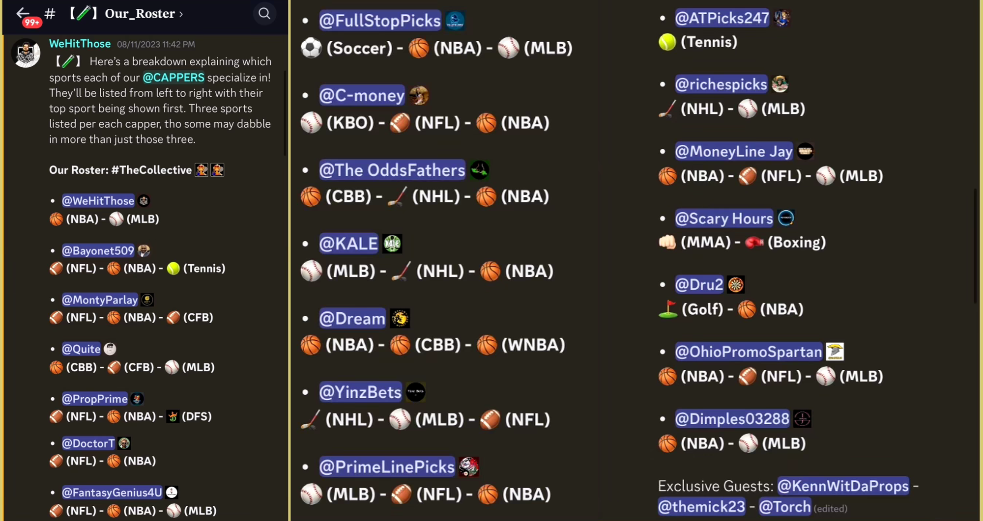 Some sports picks Discord servers are run by one capper alone. However, few Discord servers can match the breadth of sports coverage provided by The Cappers Collective.