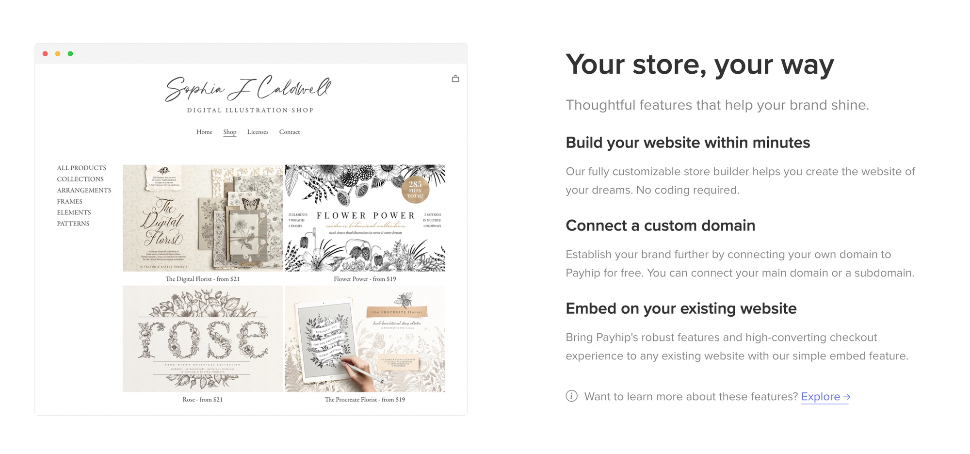 If you want a lot of control over your store's branding, you might find Payhip disappointing.