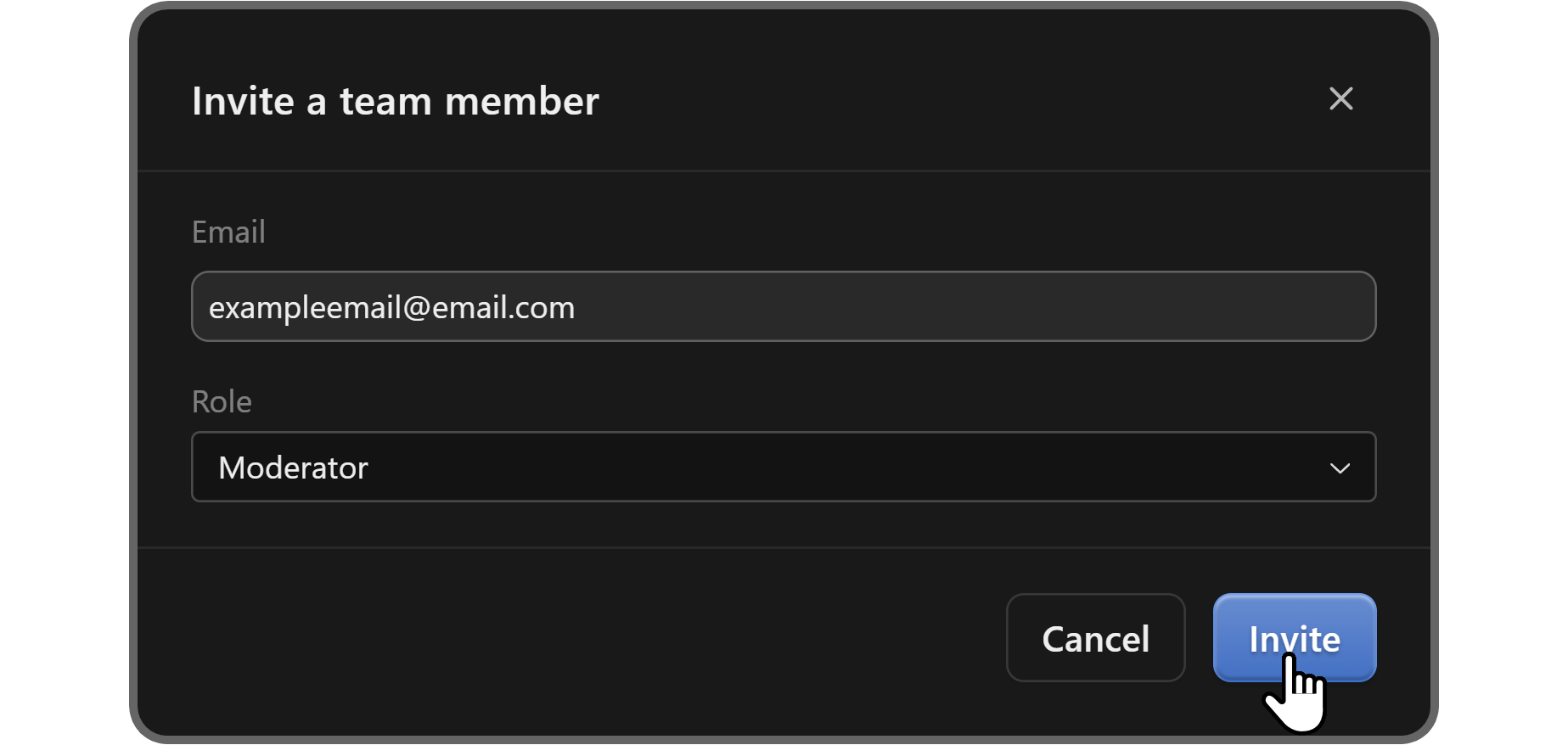Once you're done (make sure the email address is correct), click the Invite button at the bottom right of the popup.